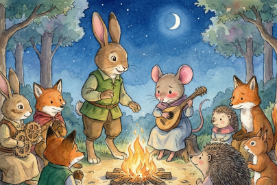 In the glowing firelight, the littles gathered in a tight semicircle—knees knocking, tails twitching, fur fluffed (depending on species and…